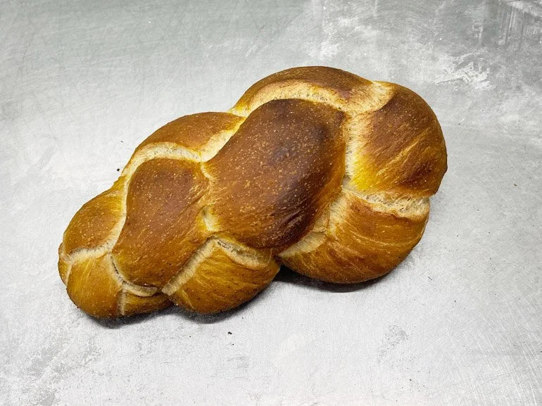 Zopf: Weizenmehl (weiss, halbweiss), Rotkornweizen, Einkornmehl, Poolish, Weizensauerteig, Milch, Butter, Ei, Zitrone, Salz; Zopf vegan: mit Hafermilch, pflanz. Butter; im Anstrich: Ahornsirup, Kurkuma